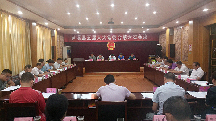 8月28号,芦溪县五届人大常委会第六次会议在县政府二楼会议室召开,县人大常委会主任胡世燕、县人大常委会副主任王长智、张如德、李茂华、韩振林等出席,县委常委、常务副县长李政,县检察院检察长颜建良列席。会议由韩振林主持。
