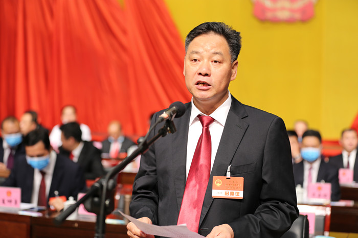 在热烈的掌声中,县委副书记、县长刘占纯代表县人民政府向大会作政府工作报告。