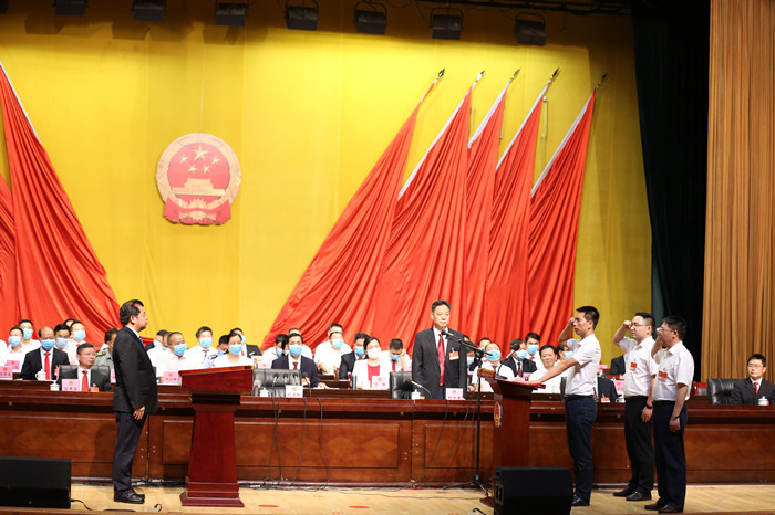 大会举行了新当选人员向宪法宣誓仪式。刘占纯监誓,胡世燕主持宣誓仪式。