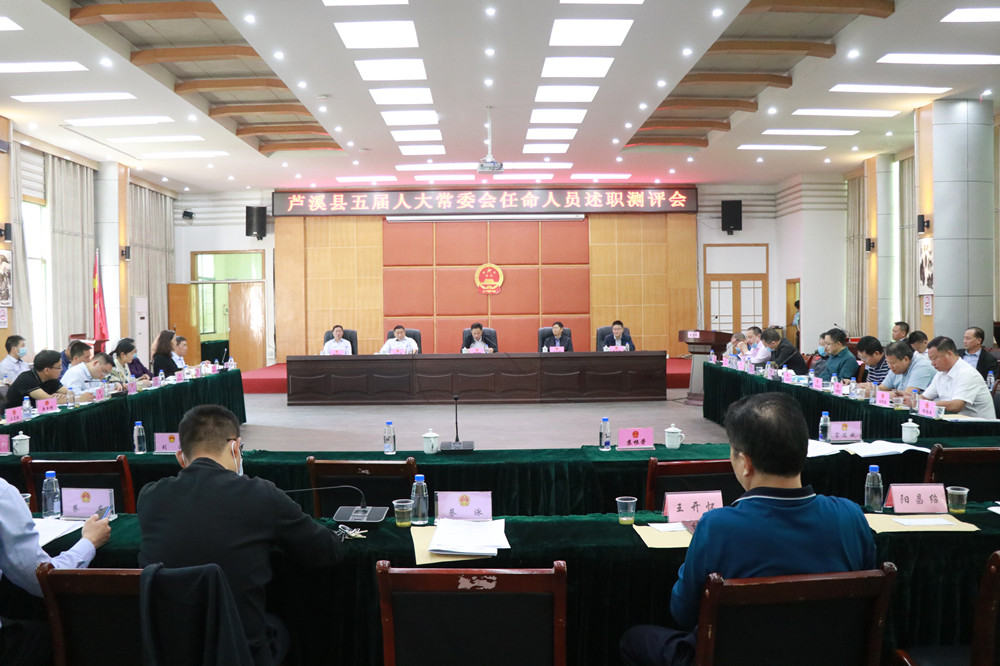 10月13日,芦溪县五届人大常委会任命人员述职测评会召开。县人大常委会主任胡世燕,副主任王长智、张如德、李茂华、韩振林出席会议。县人大常委会有关专工委负责人、乡镇人大负责人和基层人大代表参加会议。