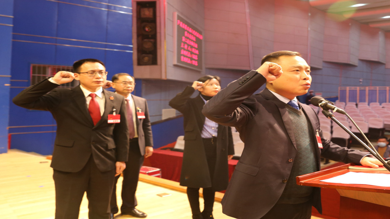 大会举行了新当选人员向宪法宣誓仪式。刘占纯监誓,胡世燕主持宣誓仪式,龙萍领誓。